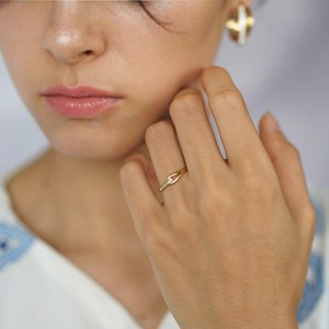 アームが中央で絡み合うような結び目(ノット)デザインまたは流れるようなウェーブが特徴の指輪です。