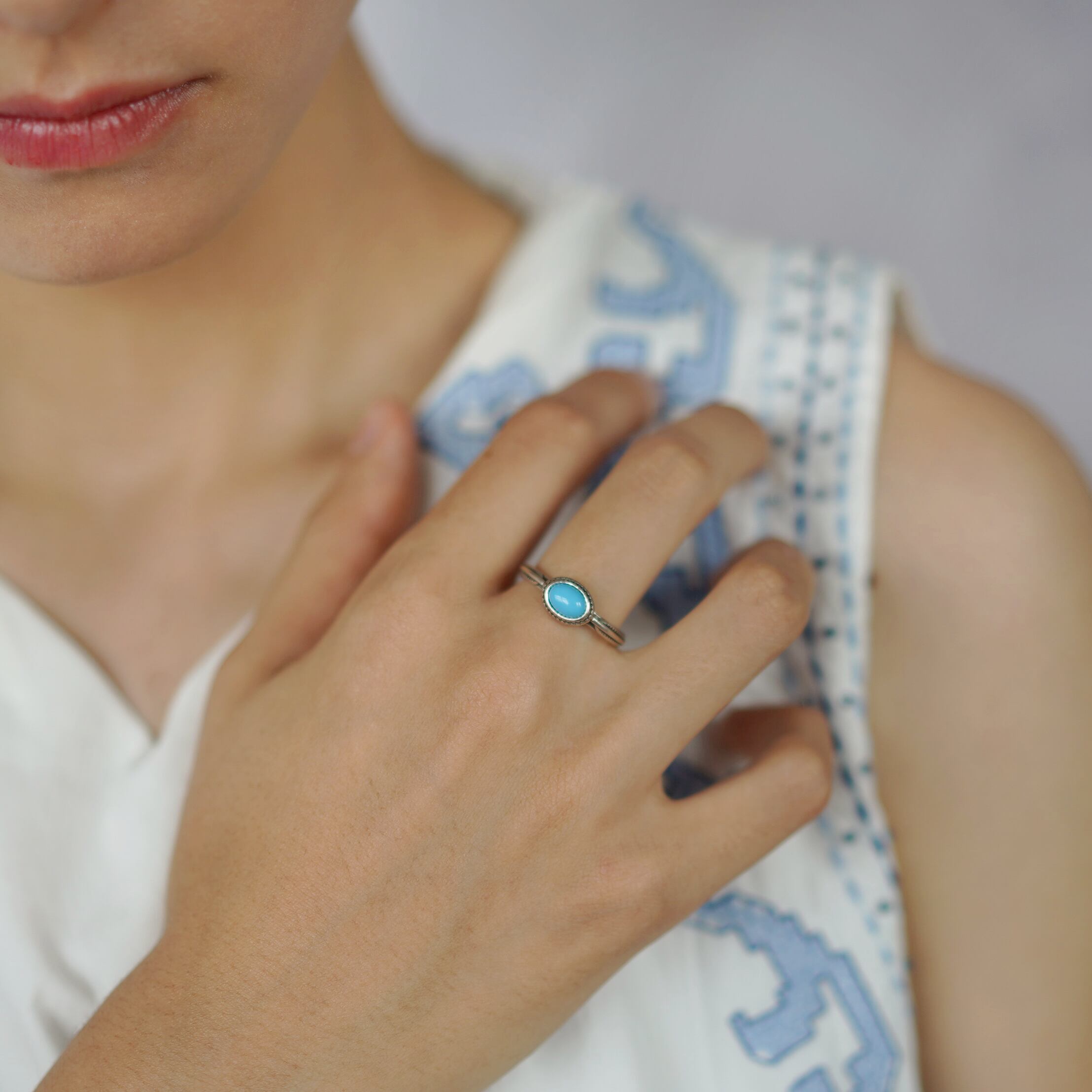 鮮やかなブルーは指元のアクセントにぴったりで、カジュアルやボヘミアンスタイルにもマッチします。ユニセックスで着用可能なデザインです。