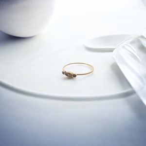 極細のシンプルさと、異なる形状のジルコニアの組み合わせが、指元に洗練されたアクセントを与えます。