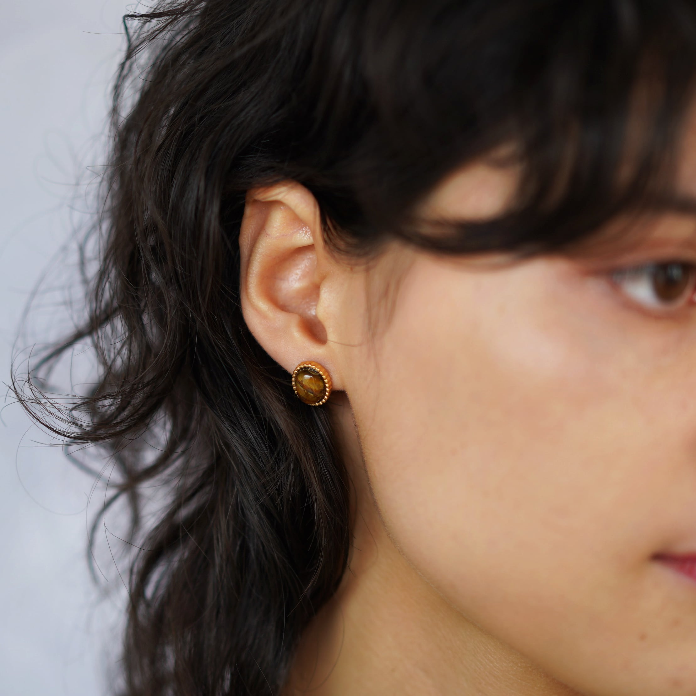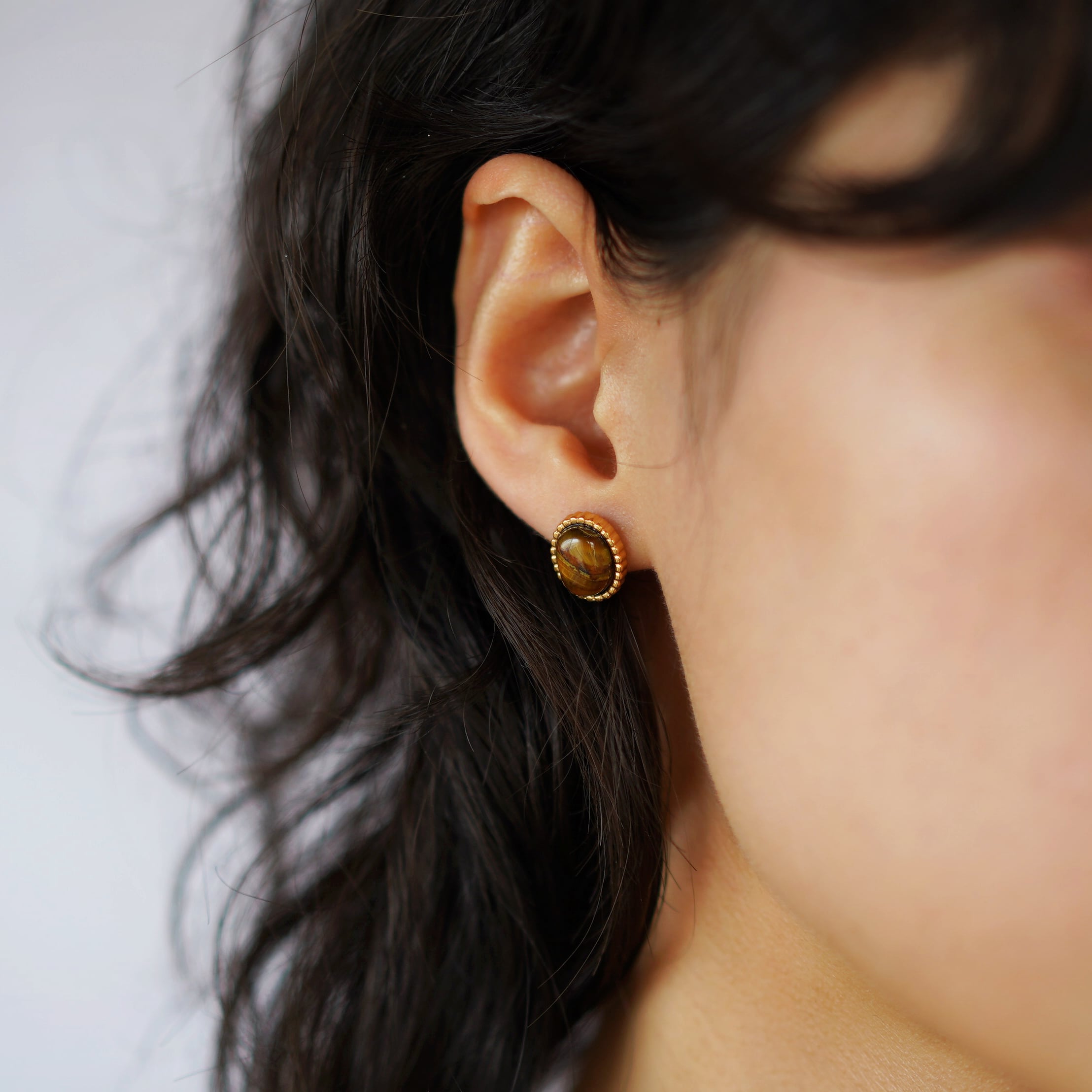 耳たぶにぴったりと収まる小ぶりなサイズ感で、さりげなく天然石の持つ独特の輝きを主張します。