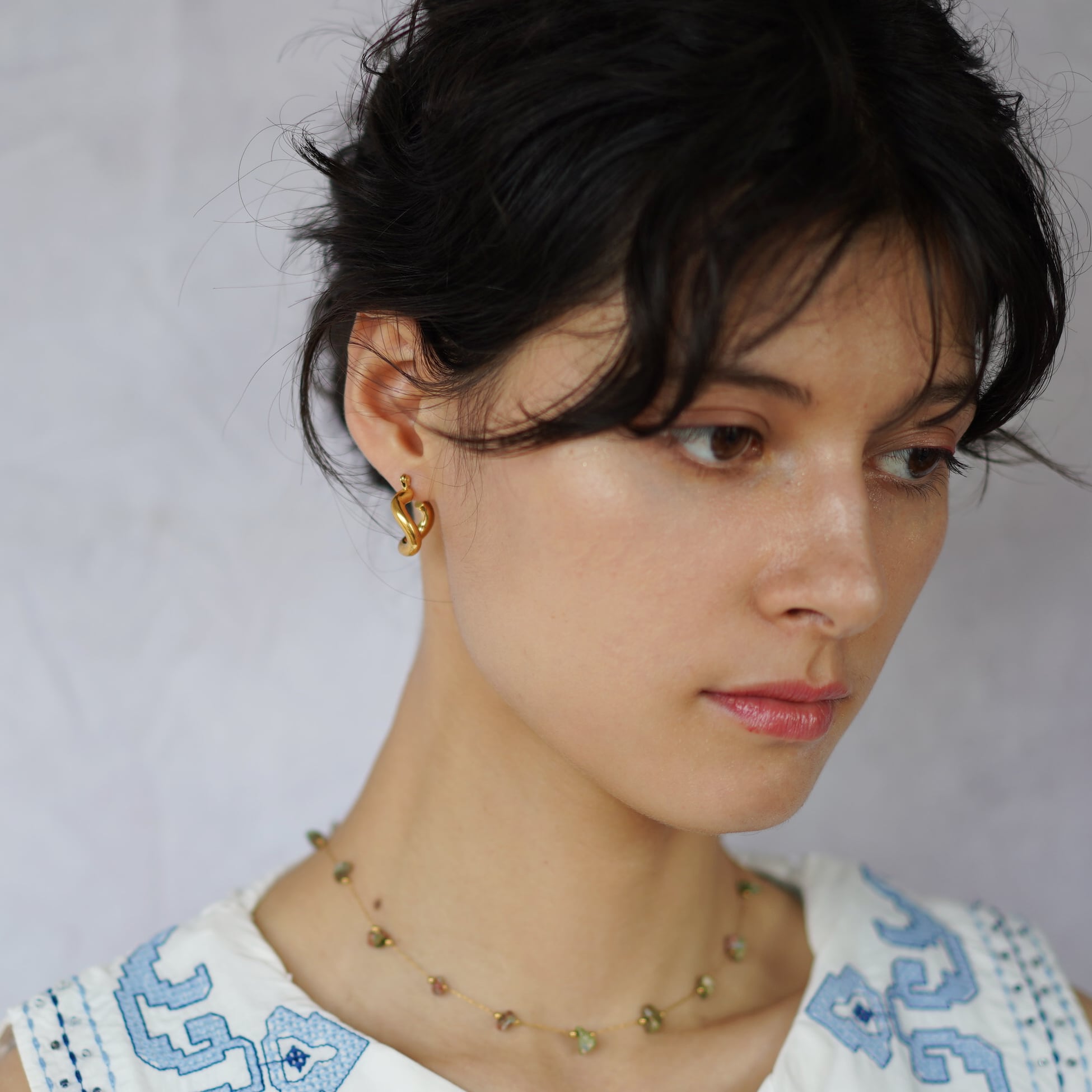 ぽってりとしたボリューム感があり、耳元に存在感を与えます。