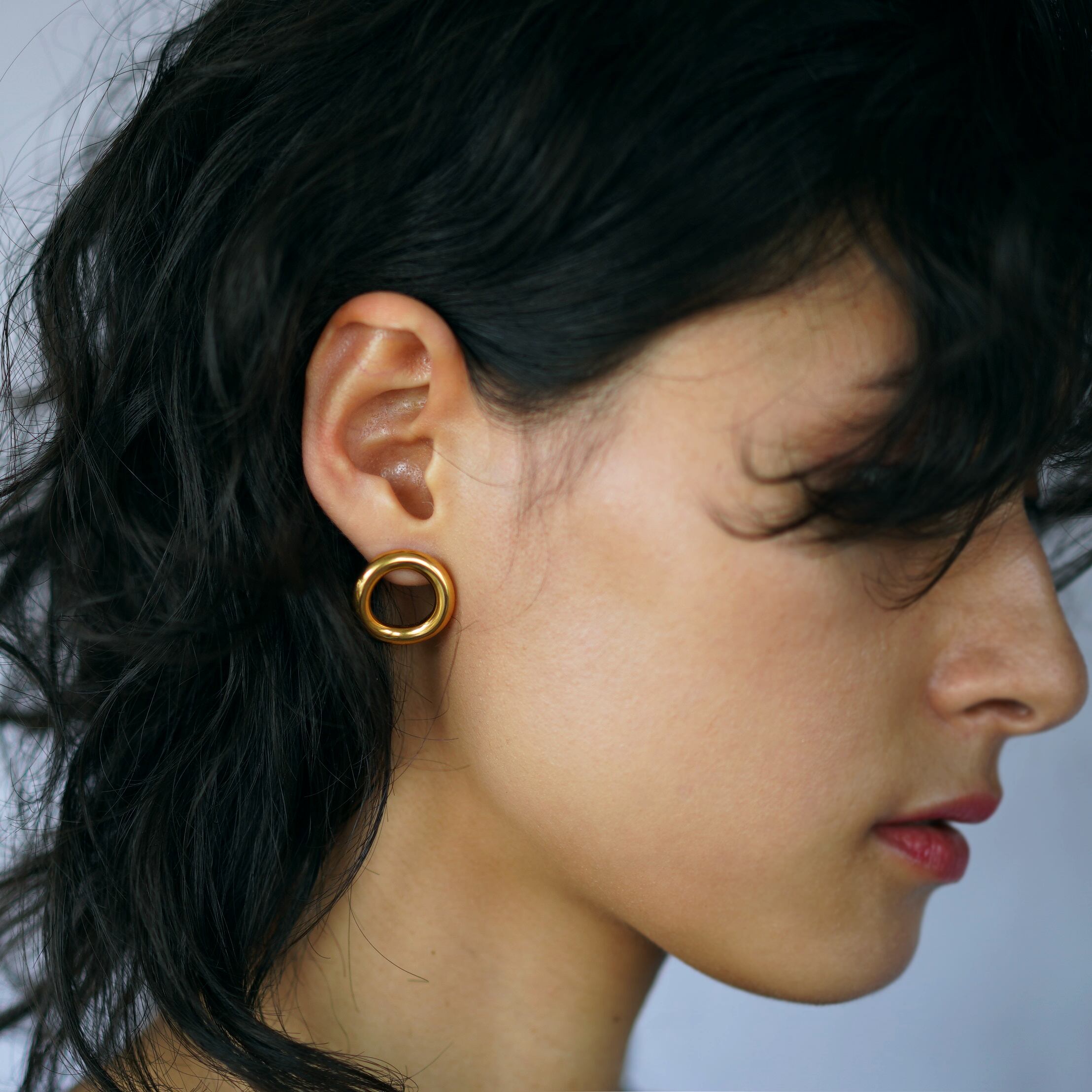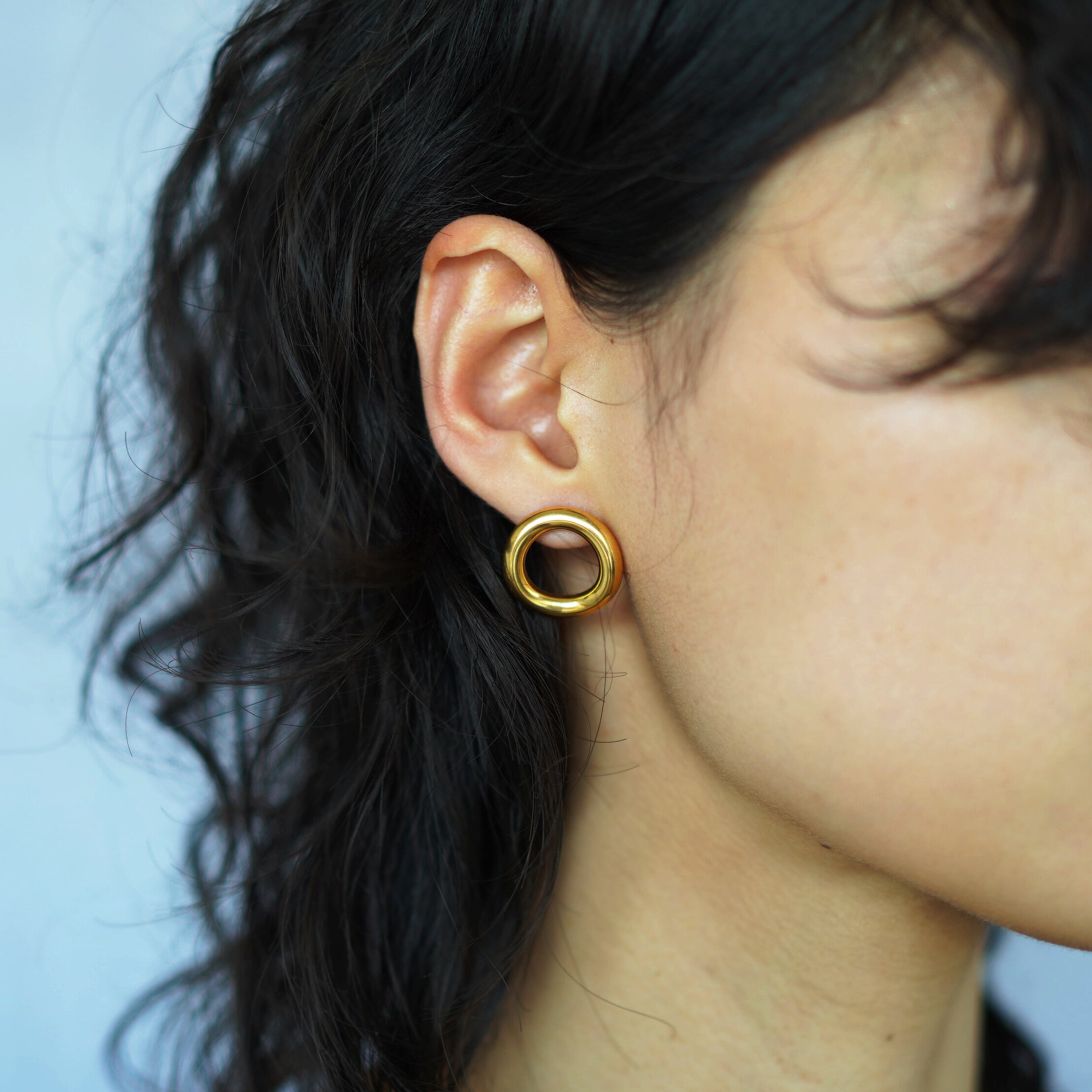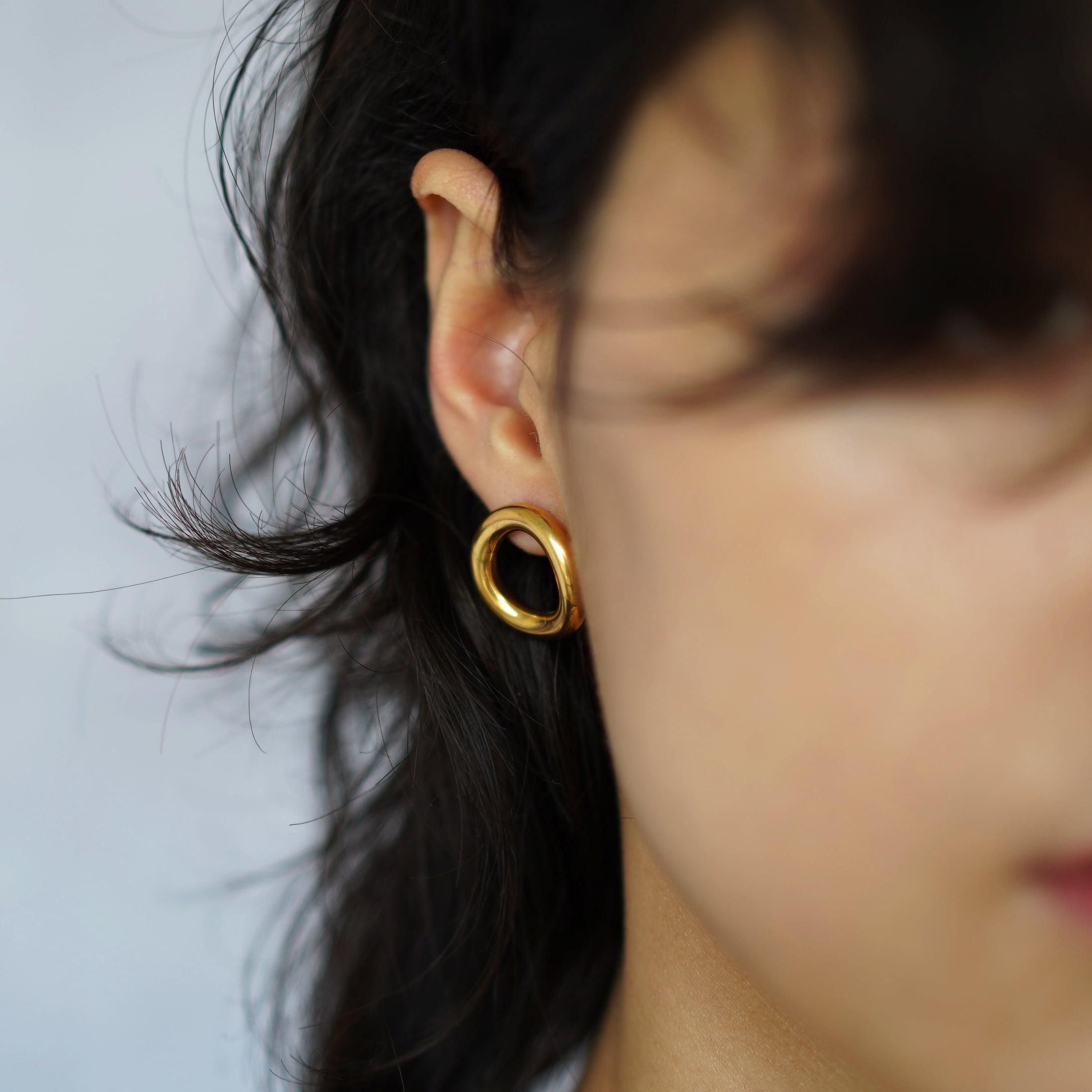 太く丸みのあるパイプ状のラインで作られた、円形のフープピアスです。