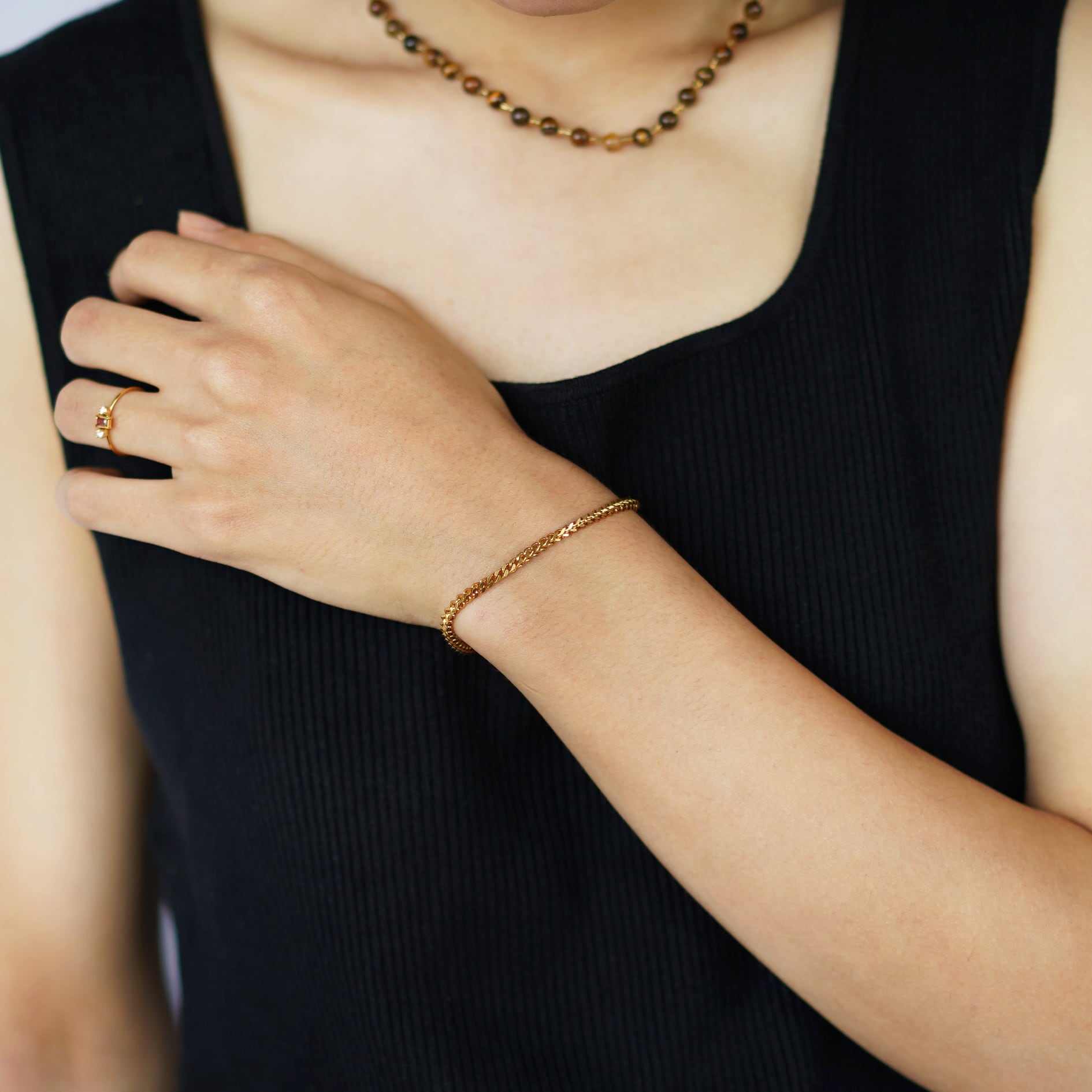 細い平らなリンクを密に連結させた、繊細なデザインのチェーンブレスレットです。