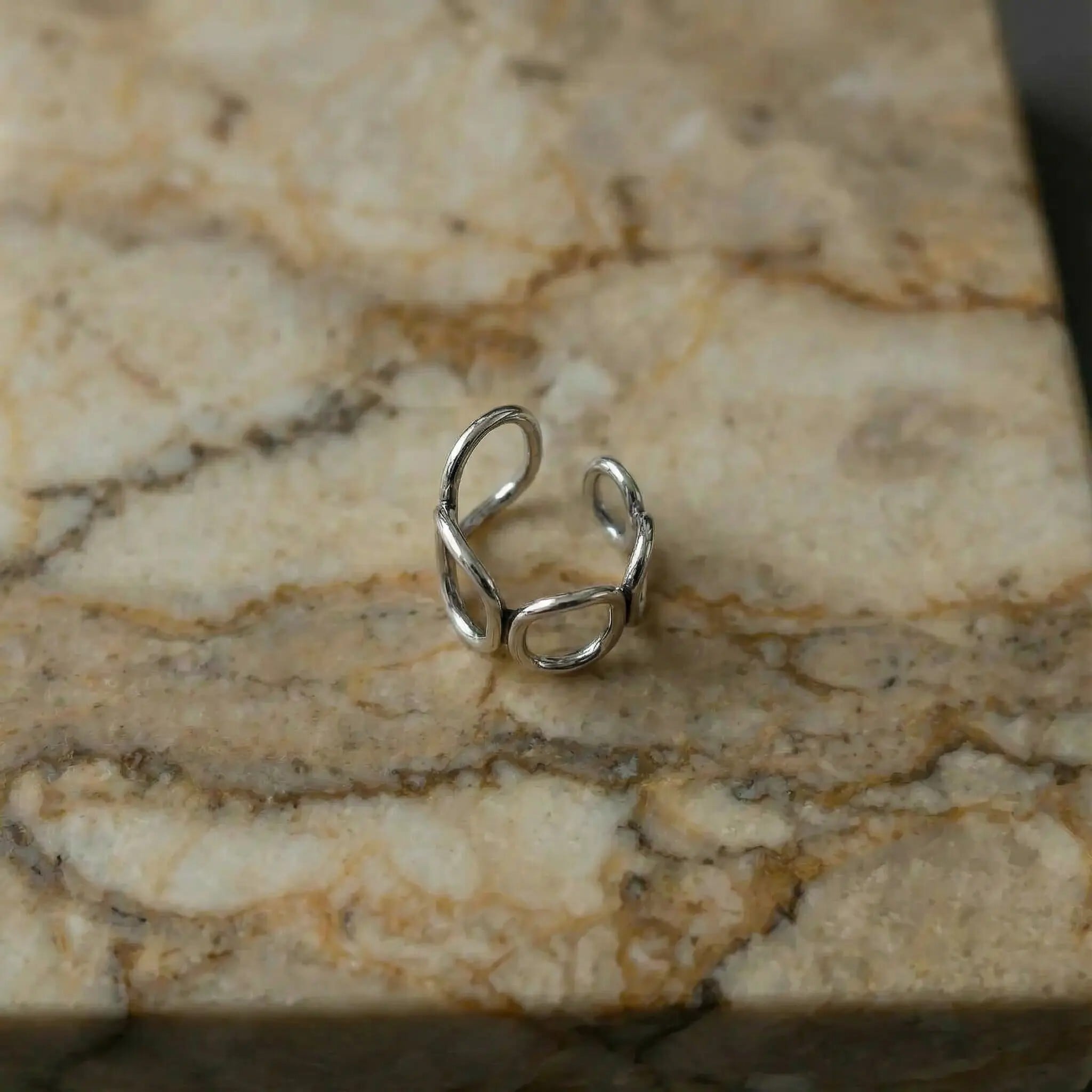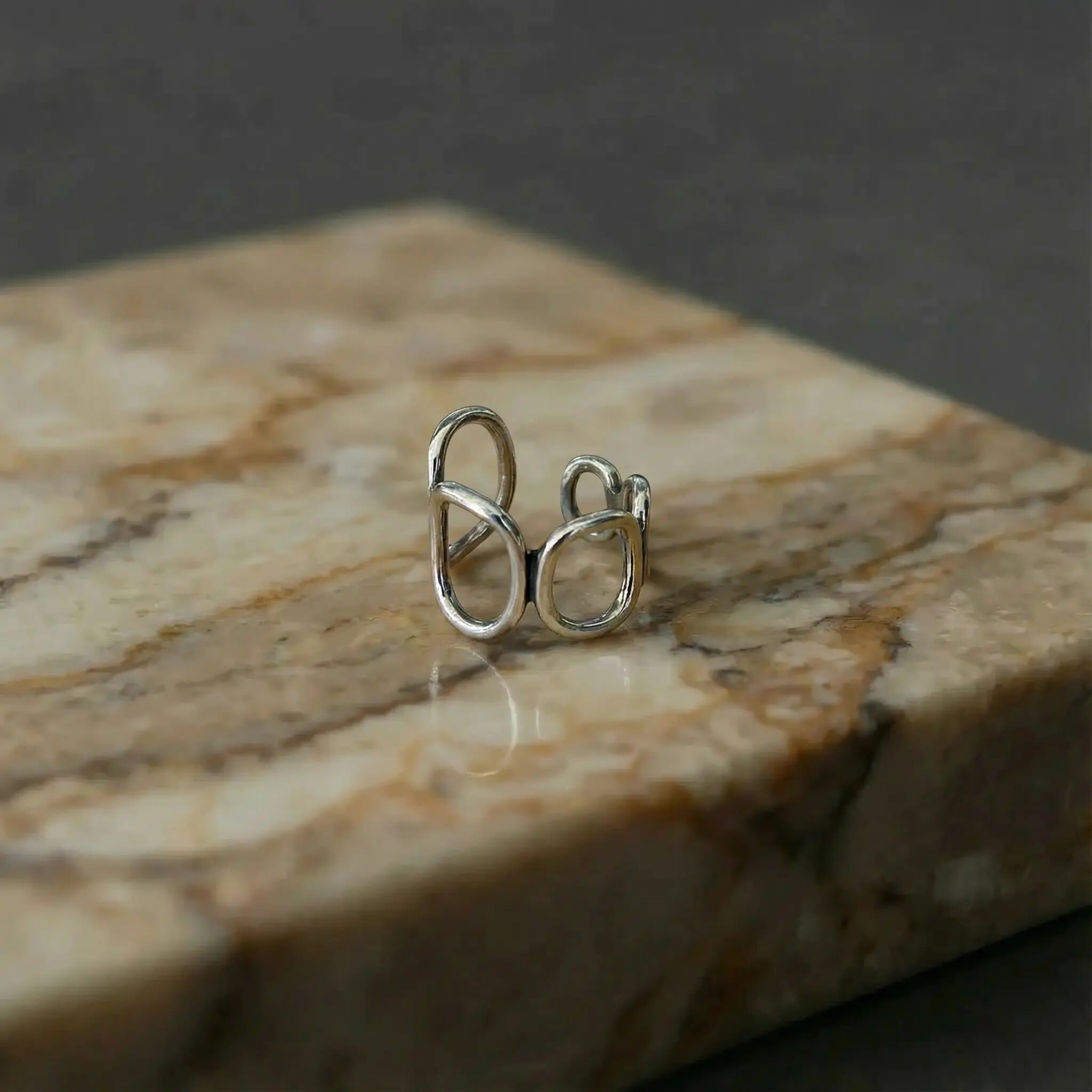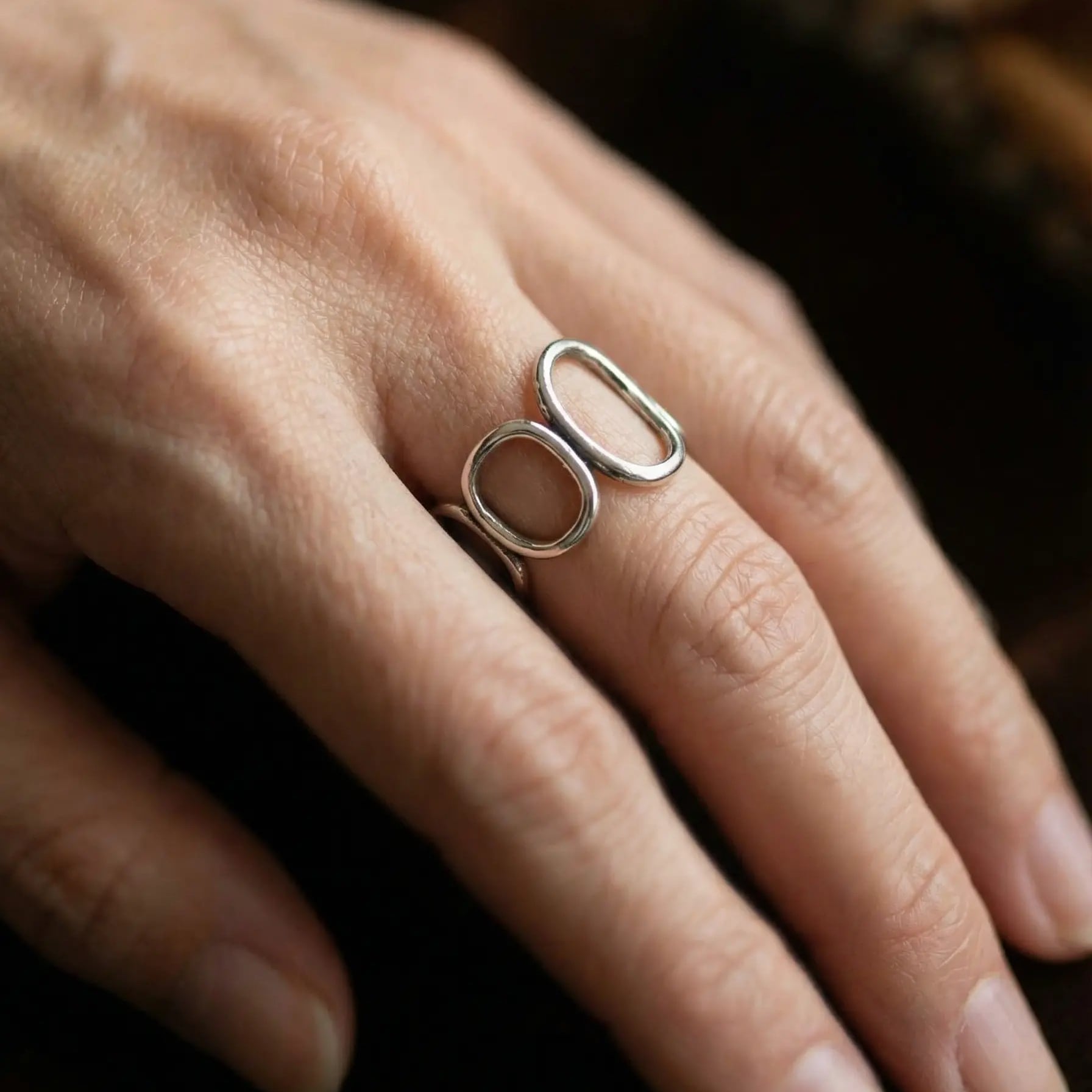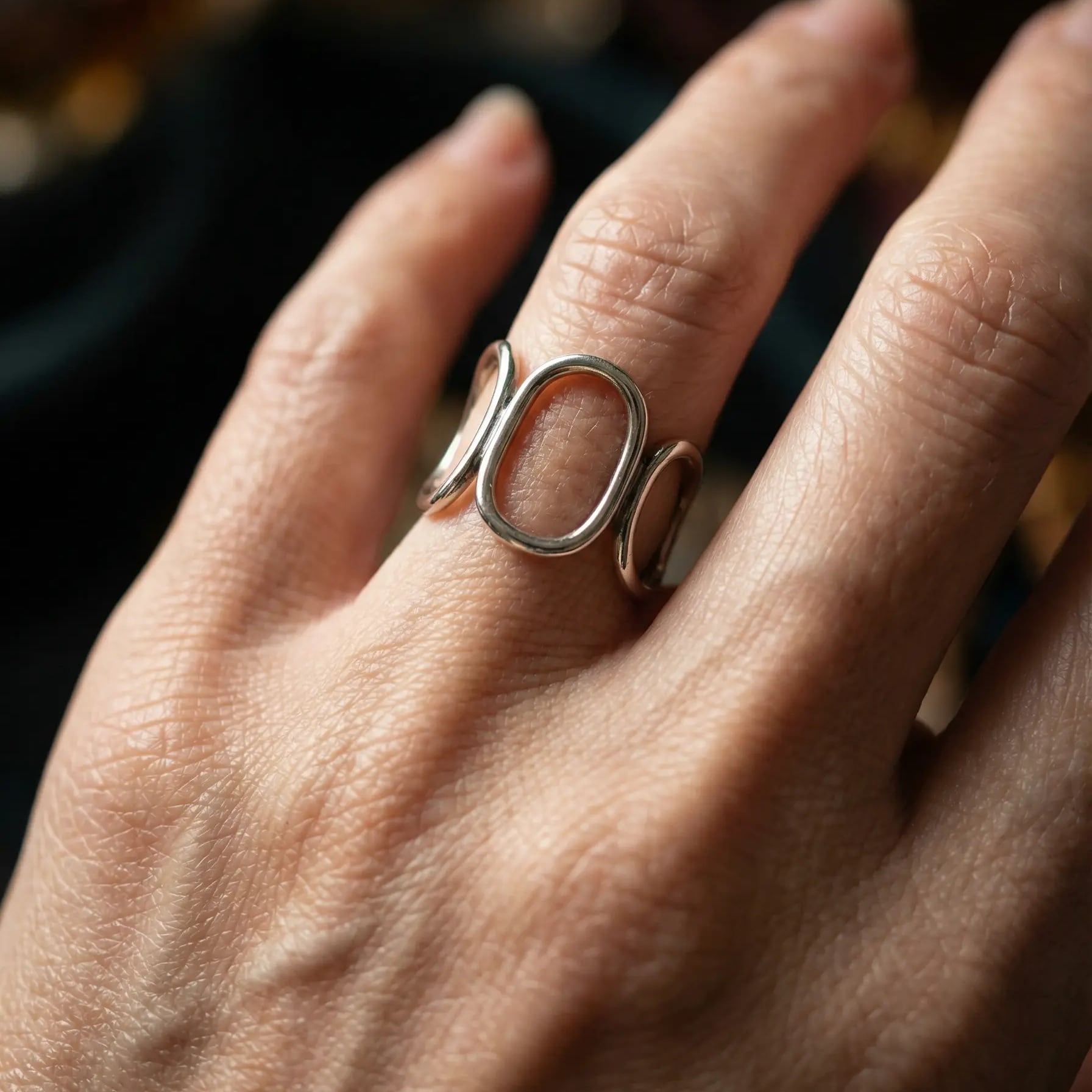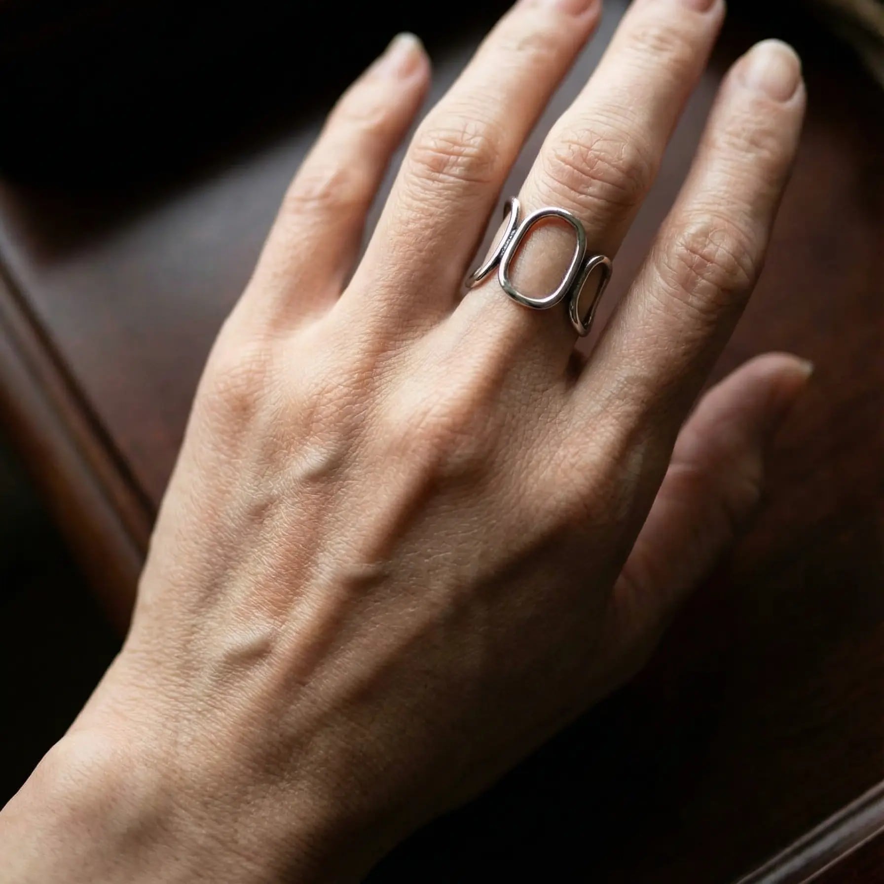 楕円のラインが軽やかに連なる、モダンなシルエットのリングです。