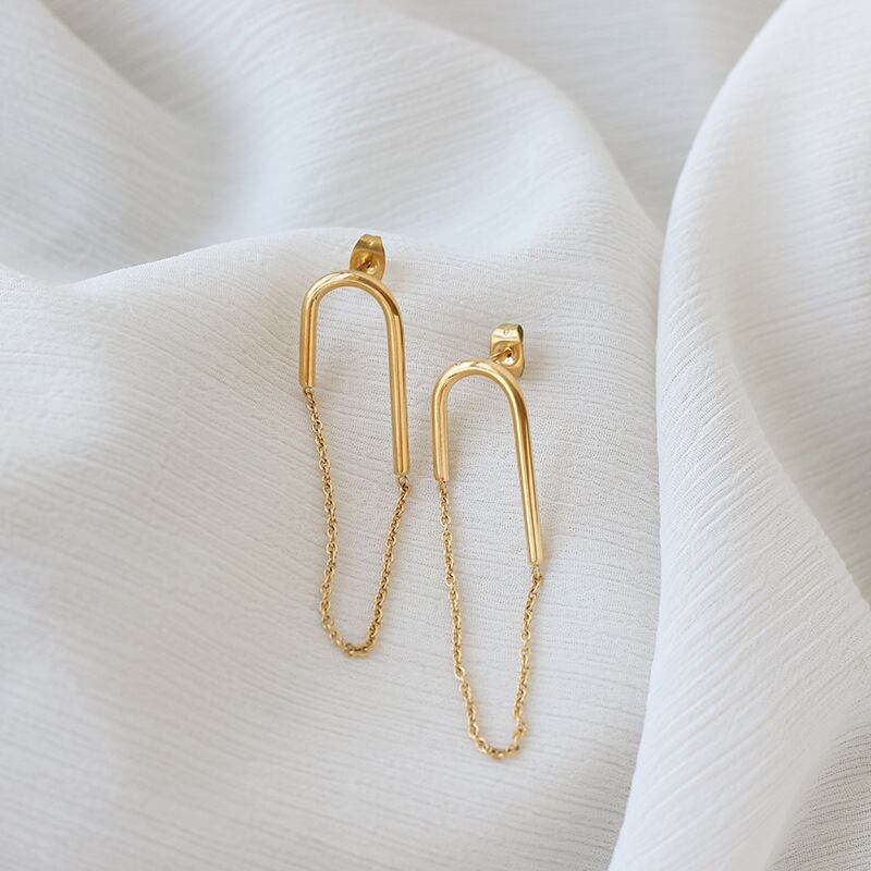 チェーンが揺れるユニークなピアス
