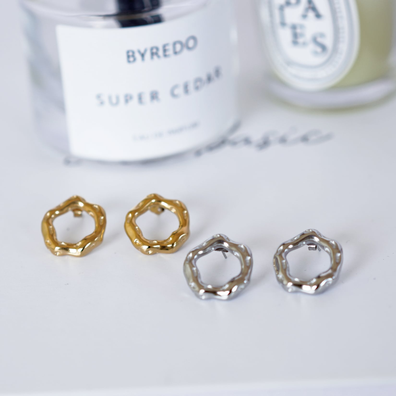 シンプルでありながらも個性的なデザインのラフラウンドピアス。おしゃれなアクセントとして、日常のコーディネートにお役立てください。