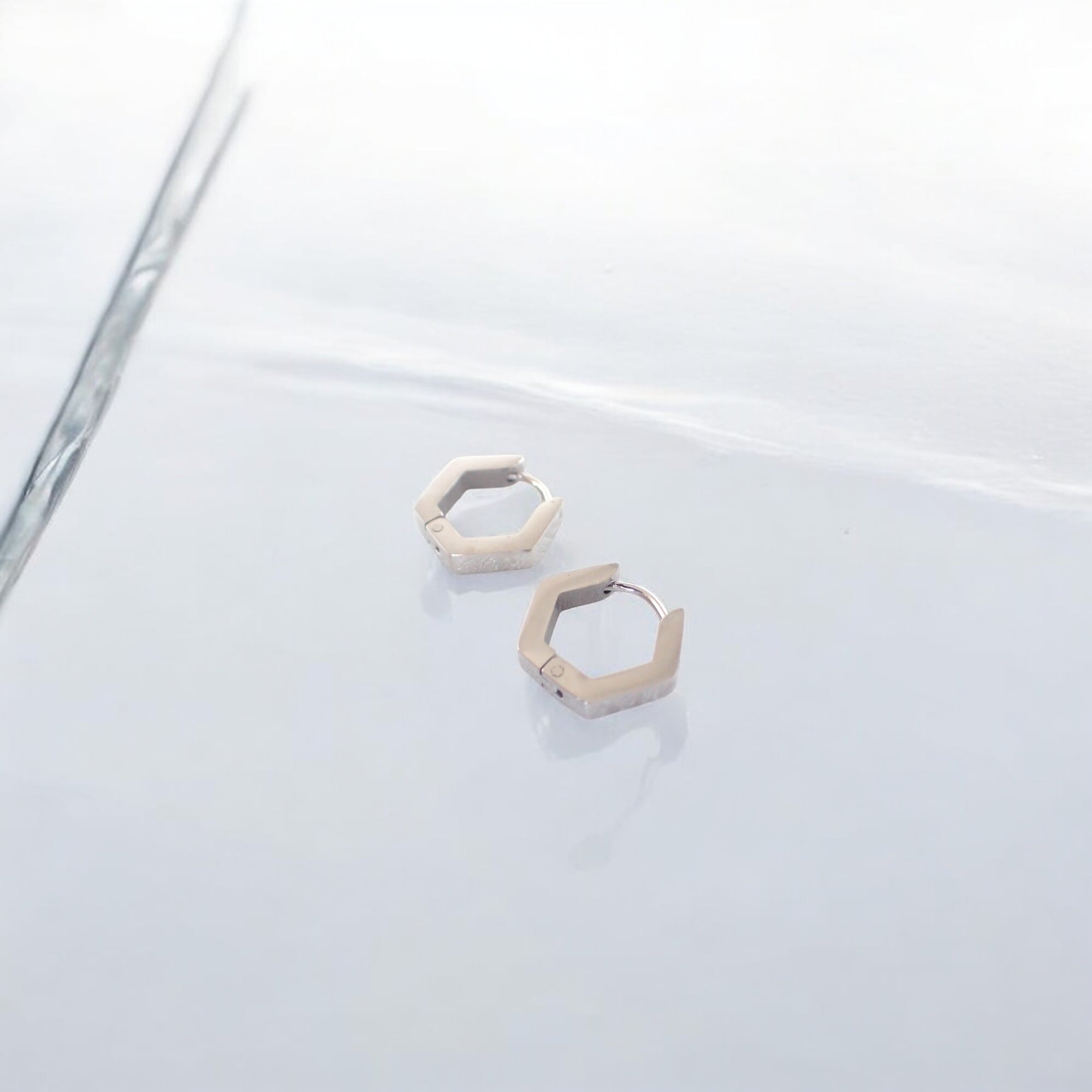 ミニヘキサゴン・フープピアスは、日常に洗練されたスタイルをもたらすアクセサリーです。