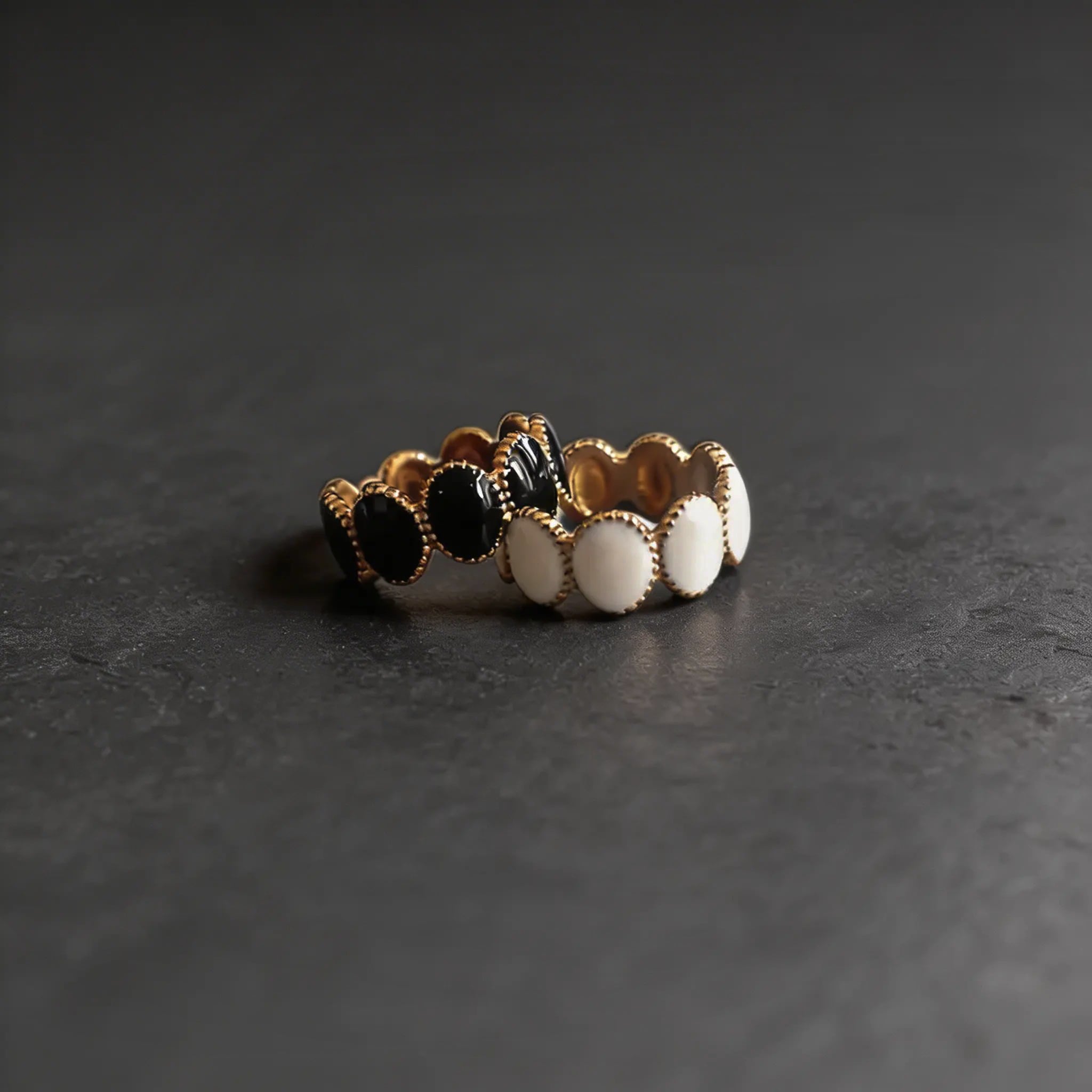 フリーサイズがうれしい、オーバルエナメルのモノトーンリング