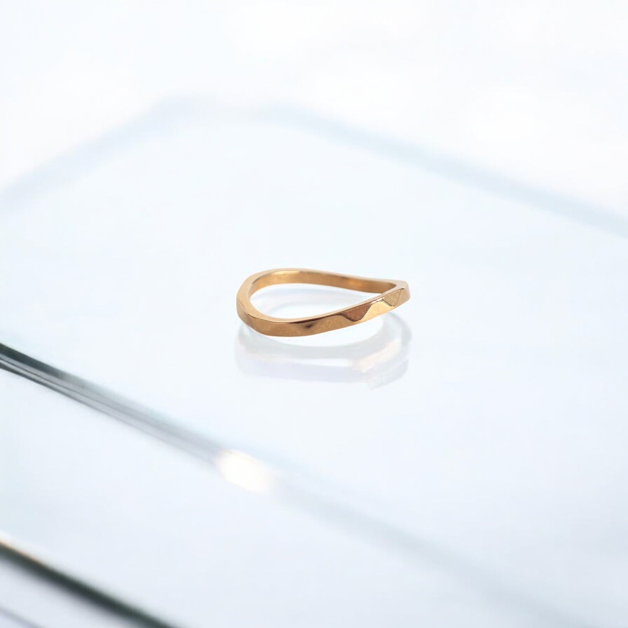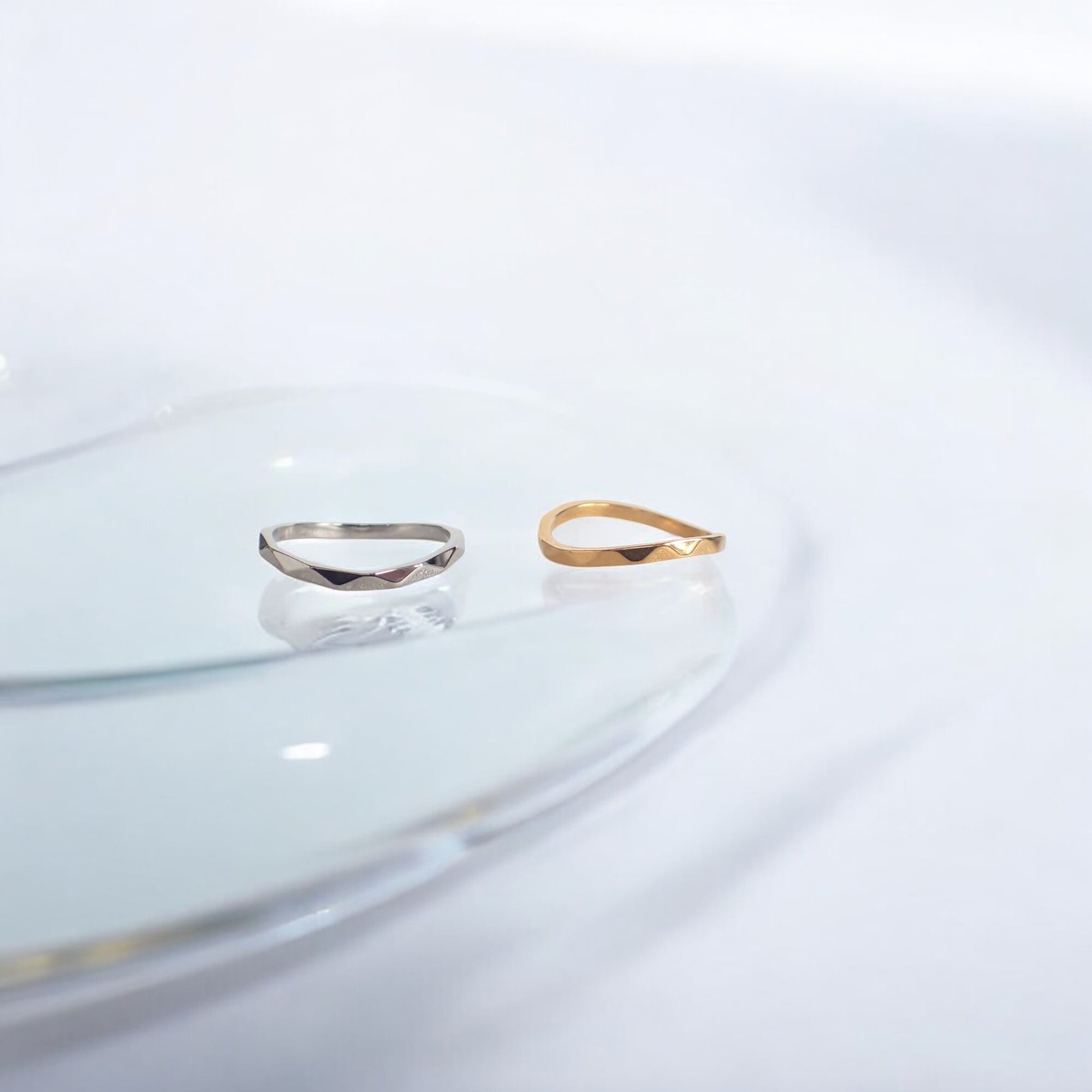 指を長くスリムに見せるフォルムと、光を反射するカットされた表面が、華やかな輝きを放ちます。