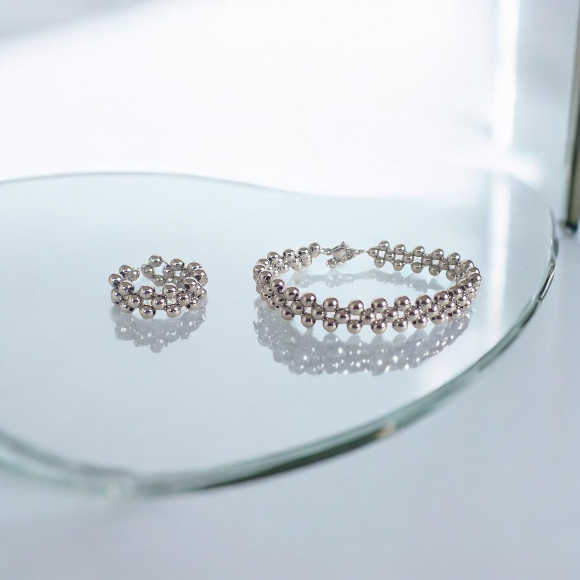 お揃いのブレスレットと合わせると、より一体感のあるスタイリングが完成します。