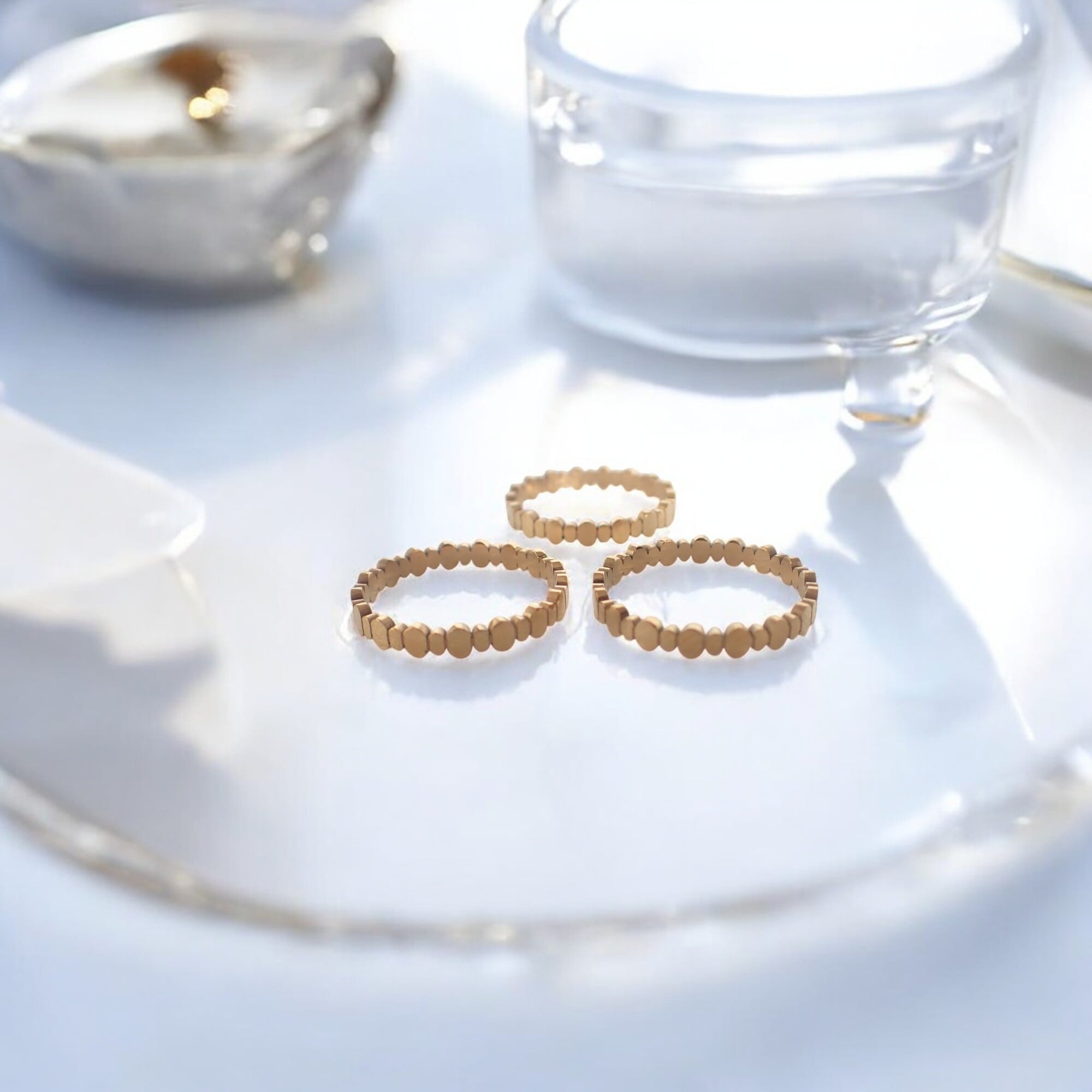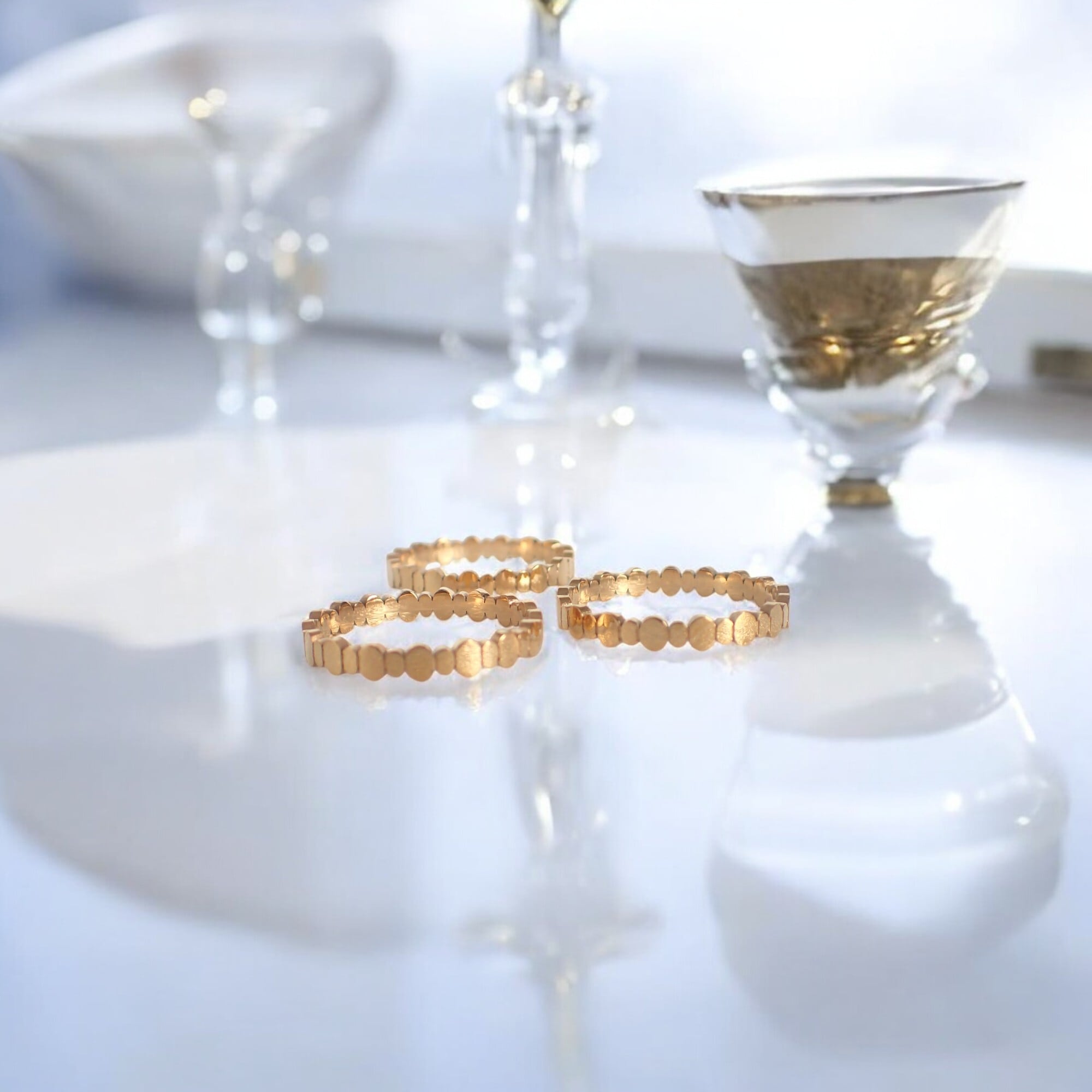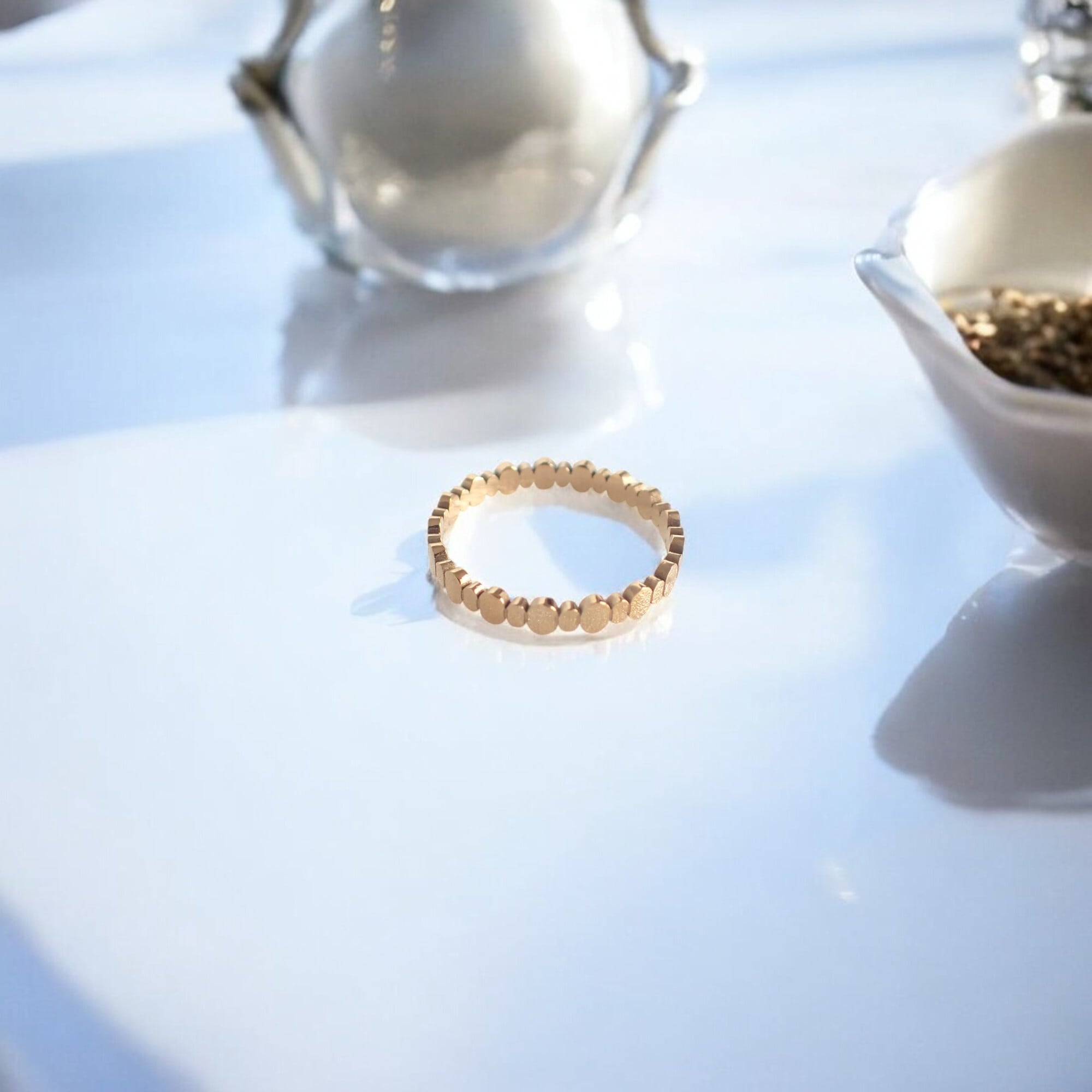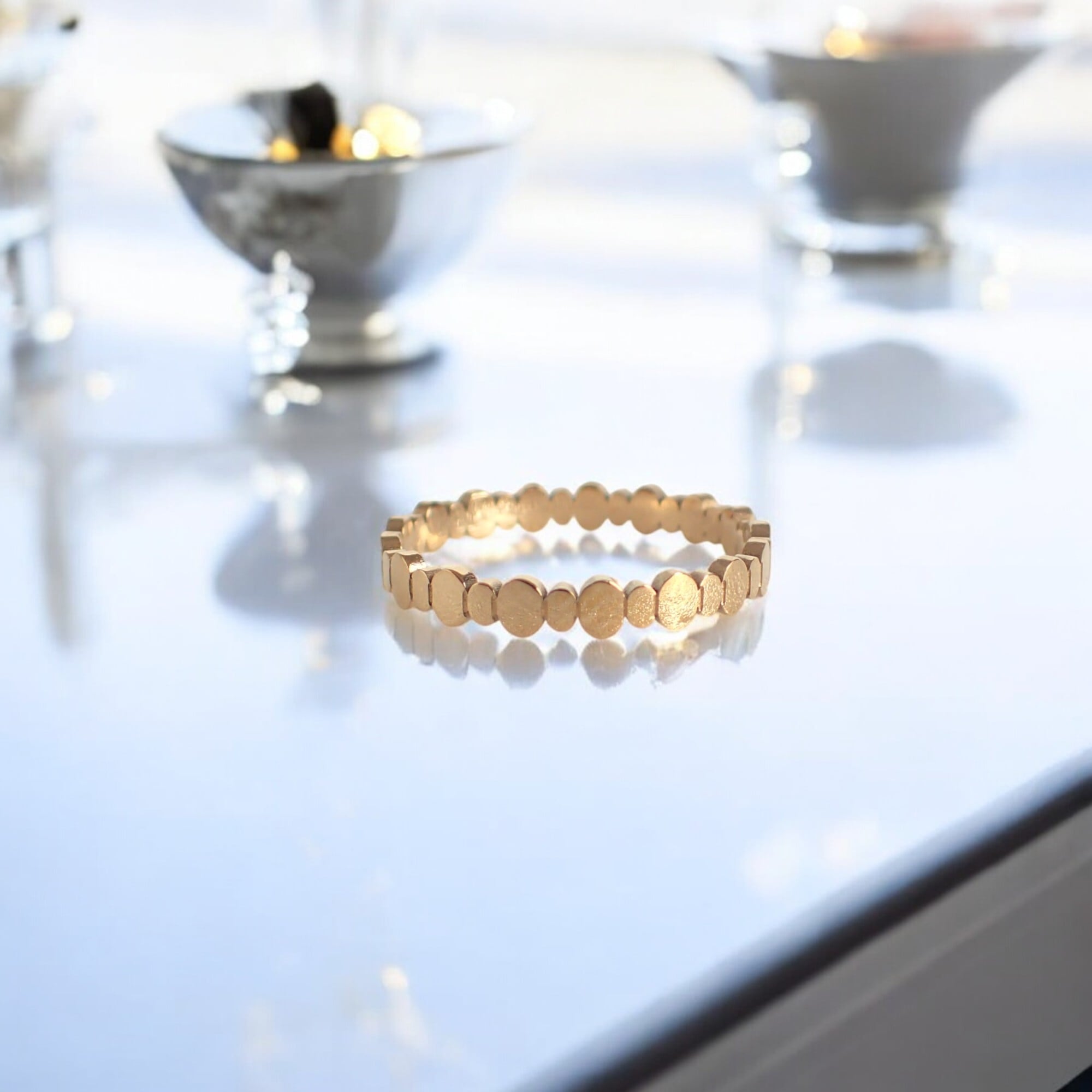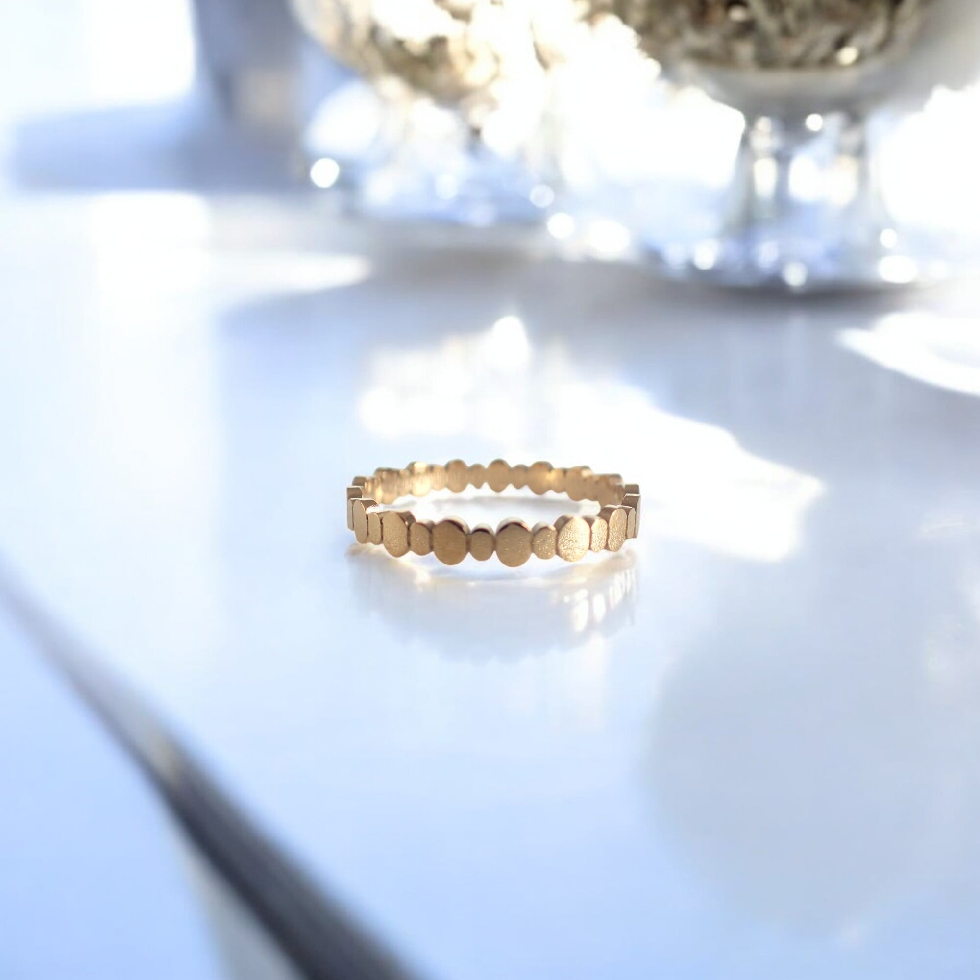 **ゴールデンエリプス・リング**は、小さな楕円形のモチーフが連なる、華やかで繊細なデザインが特徴のアイテムです。